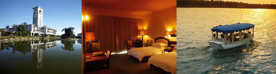 海南麗湖銀灣大酒店擁有各類(lèi)客房 402 間 ( 套 ) ,會(huì)議室 8 個(gè),可容納 1800 人開(kāi)會(huì),餐廳有中餐廳、西餐廳、宴會(huì)廳、多功能廳、 燒烤園、火鍋亭等,可接待 2000 人同時(shí)就餐?;ㄏ勺?SPA 、歌舞廳、酒吧、茶座、球館、娛樂(lè)中心、觀光游艇、釣魚(yú)臺(tái)、漁家樂(lè)、高爾夫球場(chǎng)等配套設(shè)施齊全,是休閑、度假、會(huì)議型酒店。 海南麗湖銀灣大酒店—— 集綠色、碧水、空氣、陽(yáng)光、島嶼于一體,讓您面水臨風(fēng),呼清納爽、身融大自然;別具一格的水上客房更讓您可坐擁無(wú)限風(fēng)景,盡享垂釣之娛!